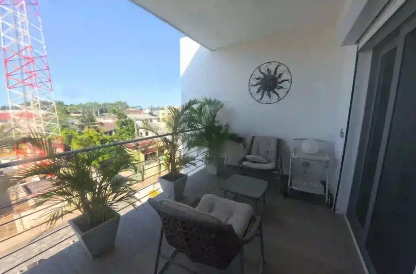 En Las Terrenas vendemos este moderna Penthouse cortinas y cojines añadir a la sensación exclusivo Apto mas la propiedad se encuentra a solo 5 minutos de Playa punta de popy 2 minutos caminando de varios restaurantes