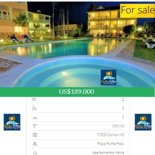 Servicios de Bienes Raices vende Apartamentos de 2 Habitaciones y otro de 3 Habitaciones uno de 100 m2 construidos y el otro de 120 metros construidos con 3 Habitaciones mas 7,000 m2 de arreas común y parqueo privado con piscina común. Ubicado a 120 metros de playa Punta de popy, y a solo 600 metros del antiguo pueblo de los pescadores, y bares entre otros lugares de intereses de Las Terrenas .